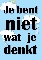 Ik hoop dan ook met heel mijn hart dat dit tijdschrift jullie, jongeren, helpt. Misschien lees je iets wat je altijd bij zal blijven. Of lees je iets herkenbaars, waardoor je denkt: mijn gevoelens zijn zo gek nog niet (wat ze sowieso nooit zijn!). Hang de posters boven je bed, schrijf de nuttige tips ergens op en krijg onterechte gedachten onder controle. Ik heb vertrouwen in je.